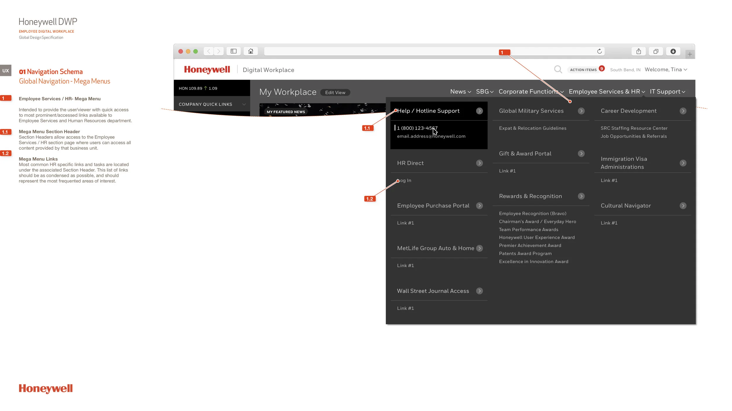 Honeywell engaged Effective UI to untangle more than a decade of intranet growth and neglect that had resulted in over 1,500 pages of fragmented, outdated, and difficult-to-navigate content. As the Lead Experience Architect, I played a central role in redefining the information architecture and interaction model for Honeywell’s Digital Workplace—focusing not just on content organization, but on clarifying the purpose each page served for employees.I led the analysis of existing content to understand usage patterns, redundancies, and unmet user needs. Based on this research, we implemented a shallow, wide information architecture designed to reduce cognitive load and improve findability. Personalized content was introduced through modular card-based layouts, inspired by a Pinterest-style mental model, allowing employees to quickly scan, prioritize, and access information most relevant to their role and responsibilities.I produced detailed Information Architecture diagrams mapping primary navigation and menu options directly to user needs and common inquiries, ensuring alignment between business objectives and employee workflows. To support development and long-term consistency, I authored comprehensive User Interface Design Documentation (UIDD) that defined interaction patterns, component behavior, and presentation rules for multiple content types across the platform.This redesign transformed the intranet from a static content repository into a flexible, personalized digital workplace—improving usability, scalability, and employee engagement while establishing a clear foundation for future growth.